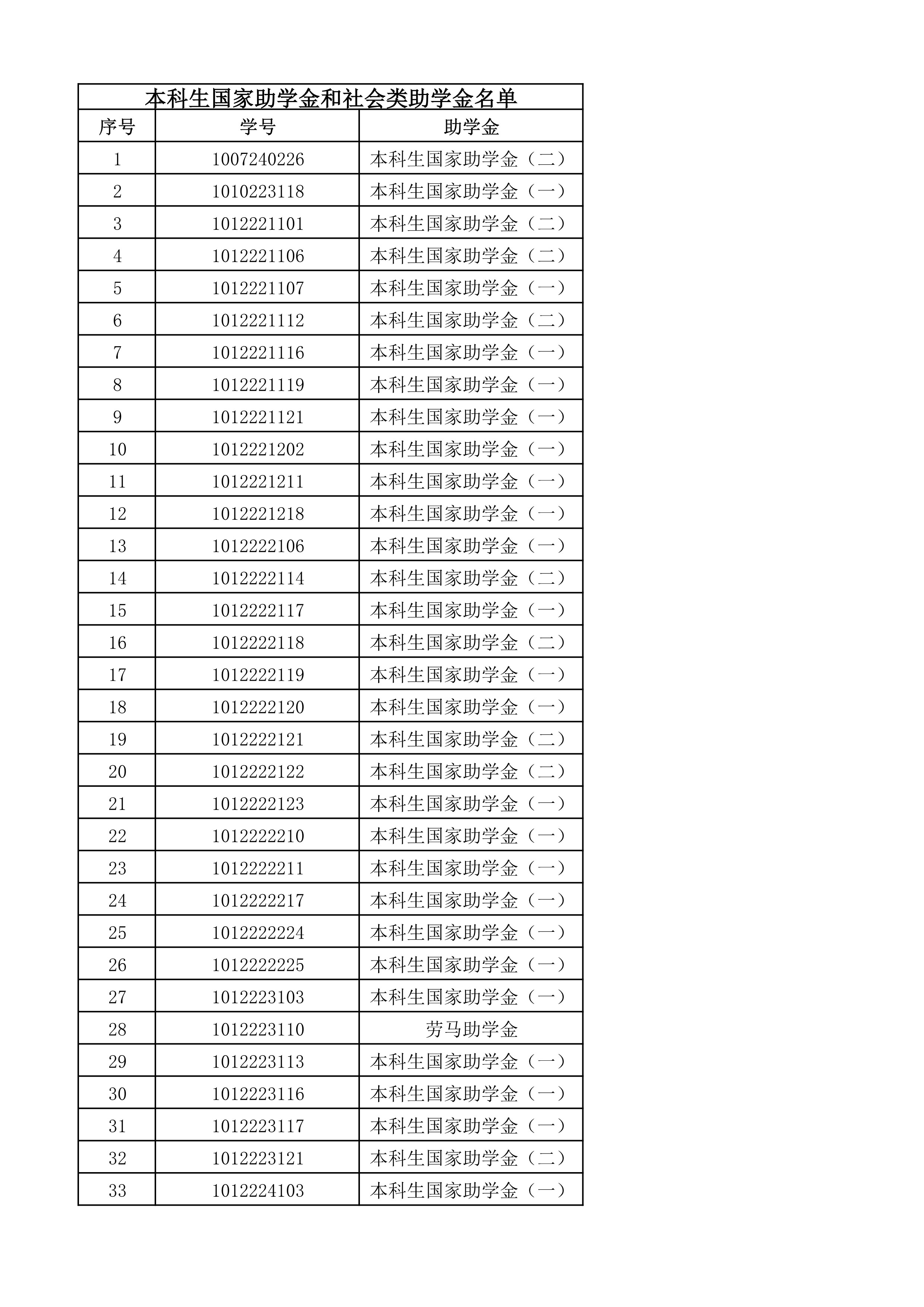 根据学校本科生国家助学金和社会类助学金通知要求,经学生申请、资格审核、年级推荐、学院评定,现将我院2024-2025学年本科生国家助学金和社会类助学金评选结果公示如下: