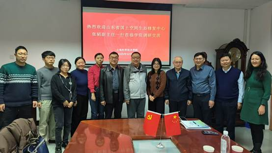 张韬副主任介绍了山东省国土空间生态修复中心的主要职能、机构设置和工作重点,回顾总结了学院和山东省国土空间生态修复中心已有的合作项目和相互的配合支持,希望我院继续发挥在生态修复领域的科研积淀与技术优势,为山东破解生态治理难题提供技术支撑。